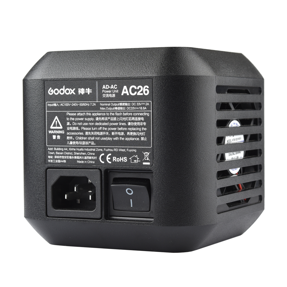 Mit einer stabilen Stromversorgung über 100–240 V Wechselstrom sorgt der AC26 Adapter für konstante Leistung, ohne sich um Akkulaufzeiten kümmern zu müssen. Ideal für Produktfotografie, Portraitsessions oder Video-Setups im Studio.